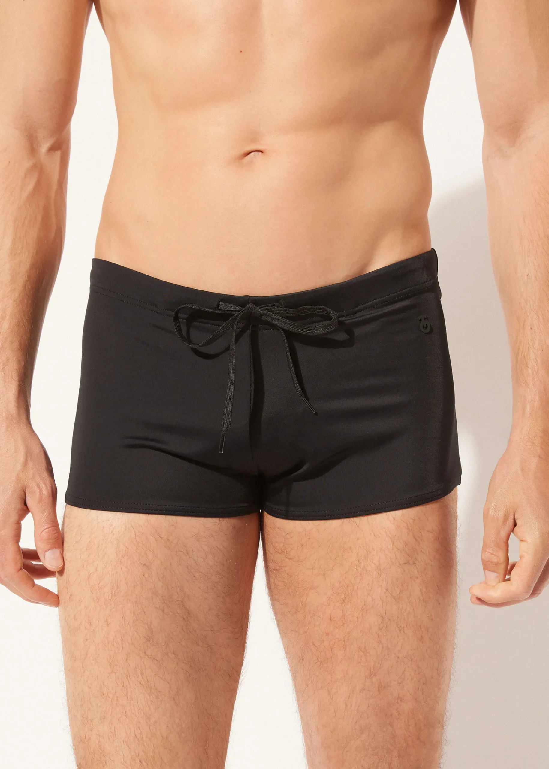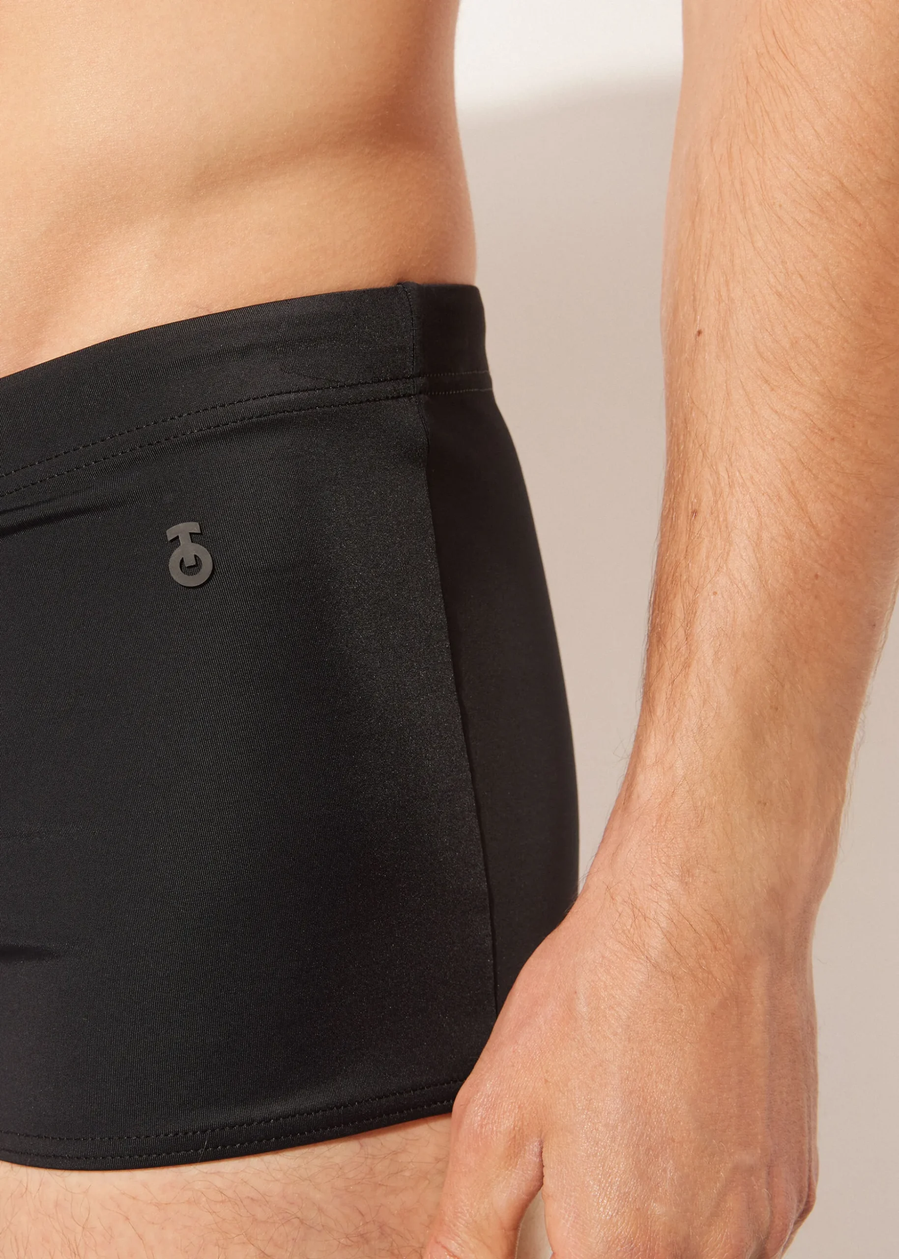 Męskie bokserki kąpielowe z mikrofibry. Fason z szerokimi bokami, zakrywający pośladki. Obszyta gumka w pasie z wiązanymi na zewnątrz troczkami umożliwiającymi wygodne dopasowanie. Przód wyściełany podszewką.