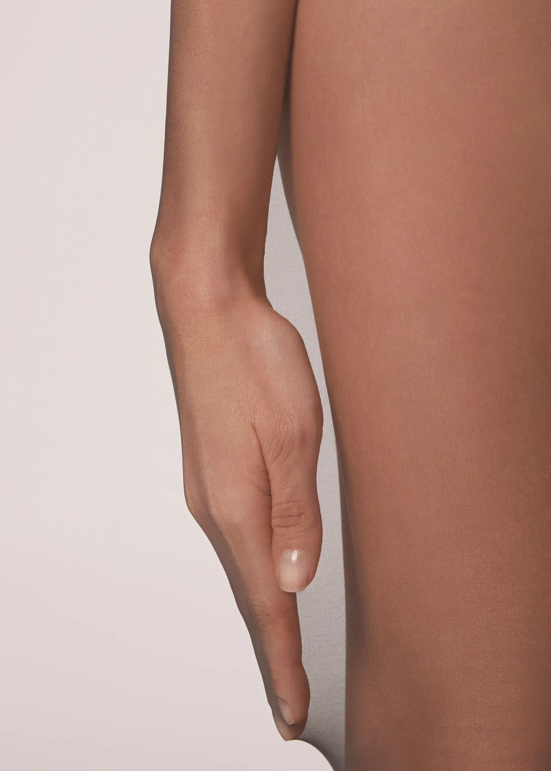 Cienkie rajstopy 20 den, matowe, bezmajtkowe z płaskimi szwami. Pasek komfort, bawełniany klin i niewidoczne czubki palców.