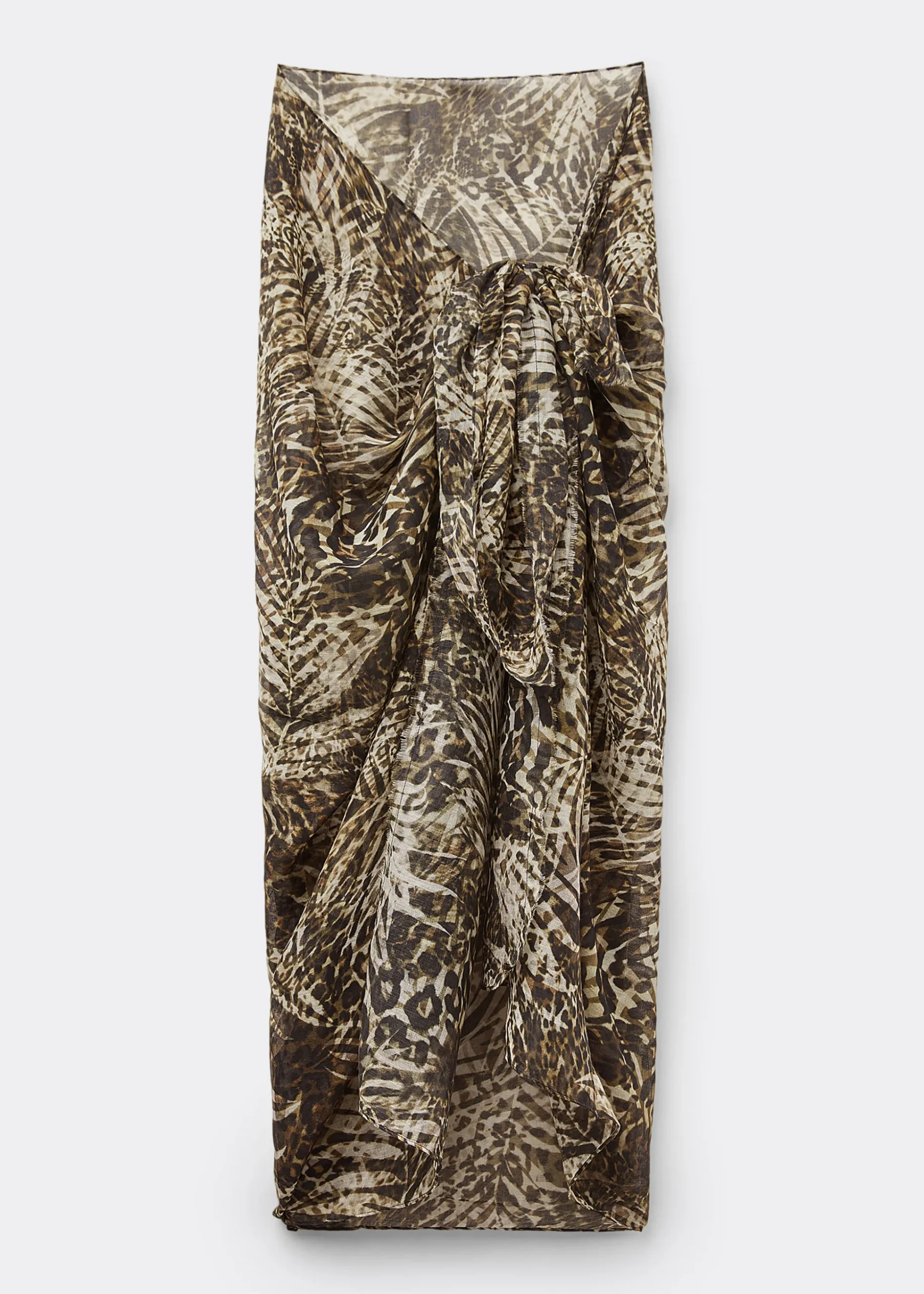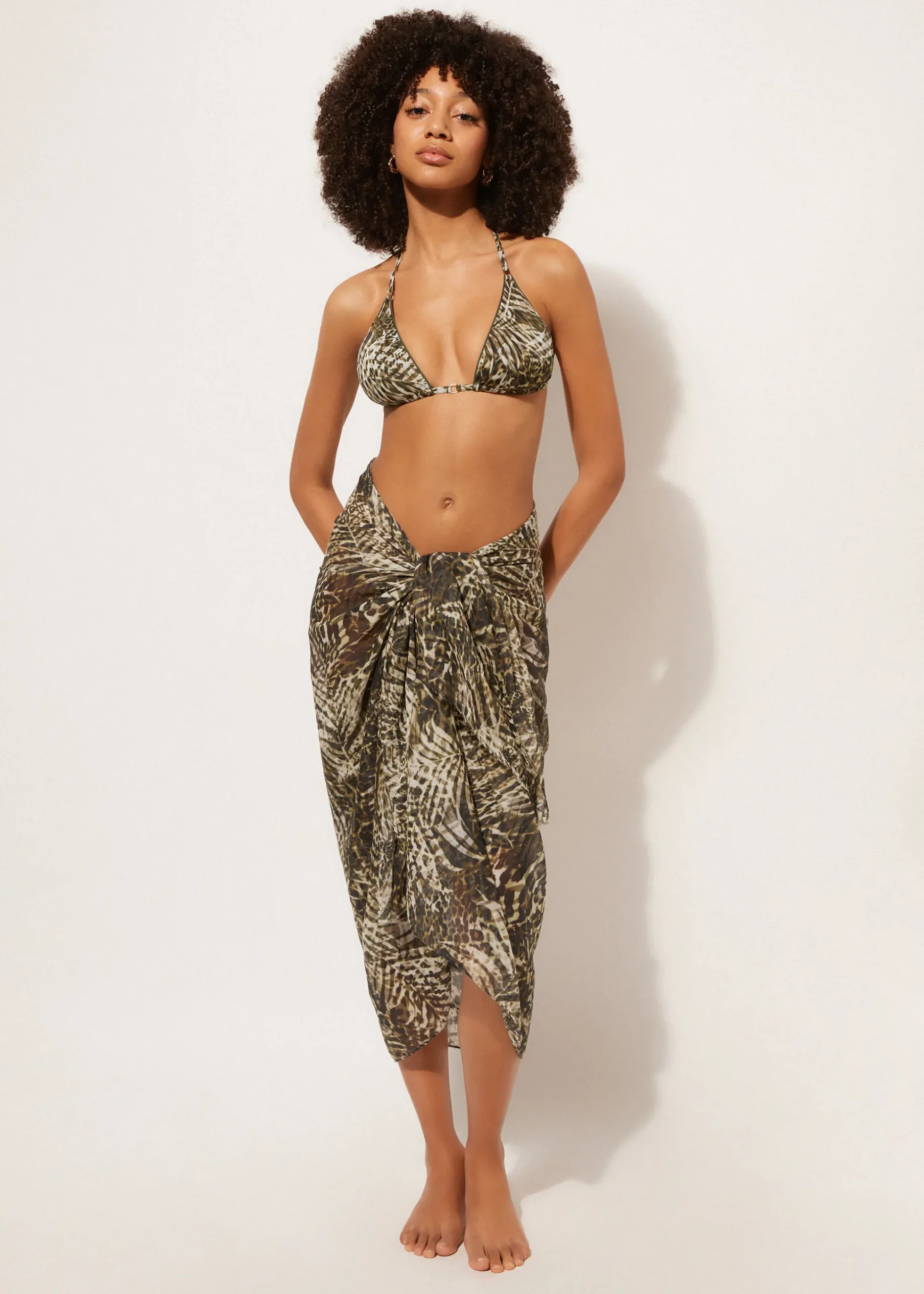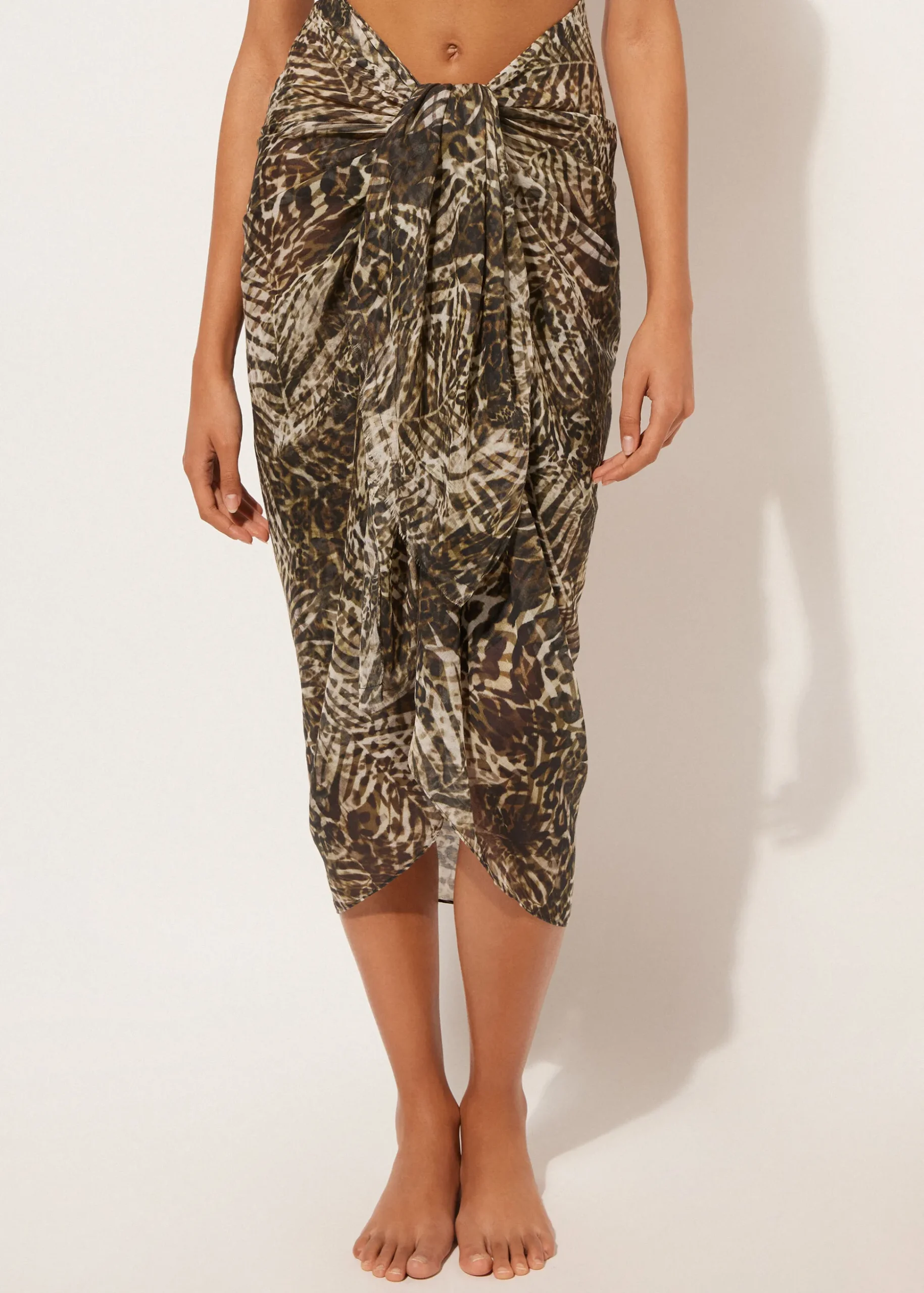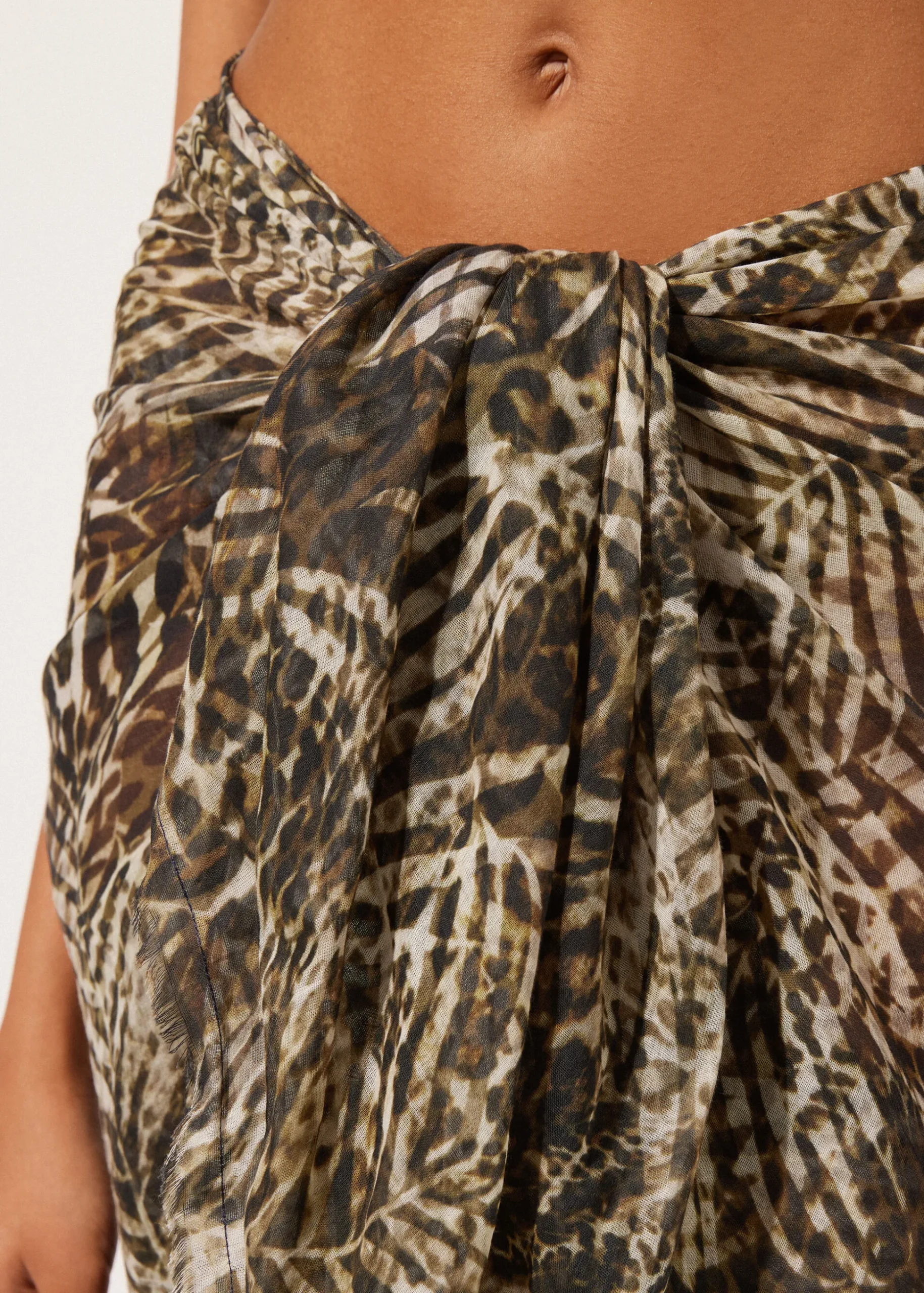 Bawełniane długie pareo ze zwierzęcym wzorem z możliwością noszenia na kilka sposobów: klasycznie przewiązane w pasie lub jako sukienka plażowa wiązana za karkiem lub nad biustem.