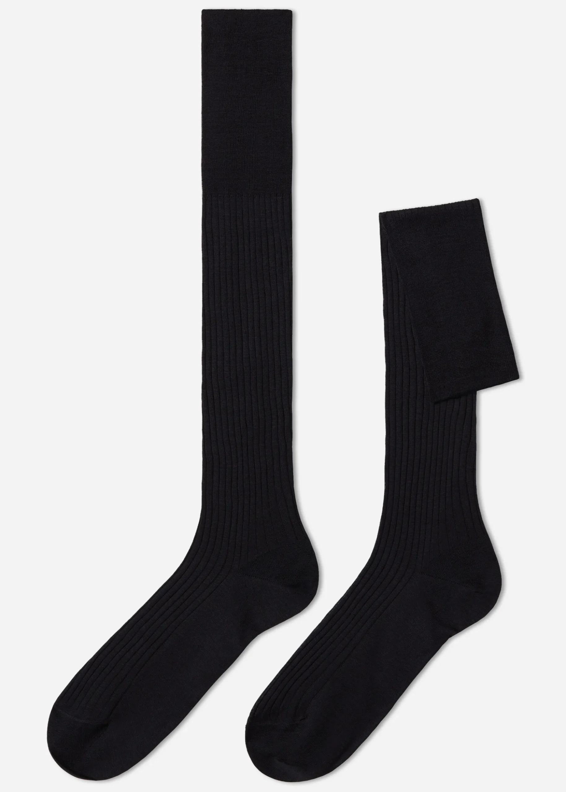 Długie prążkowane skarpety męskie z bawełny merceryzowanej