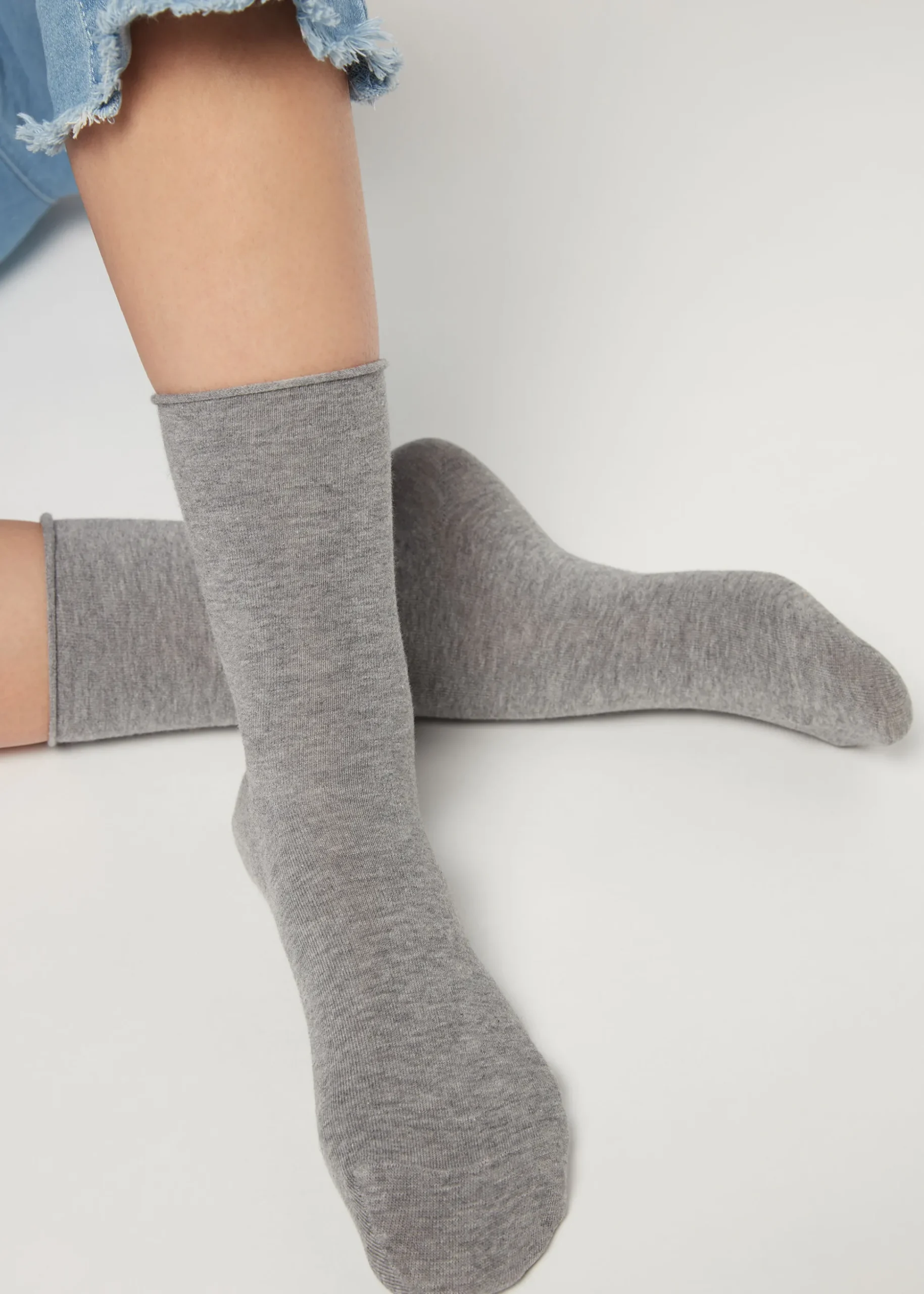 Krótkie skarpetki damskie z bawełny bez ściągacza.