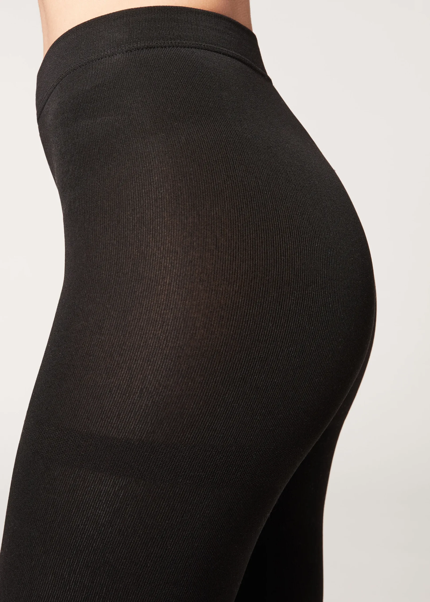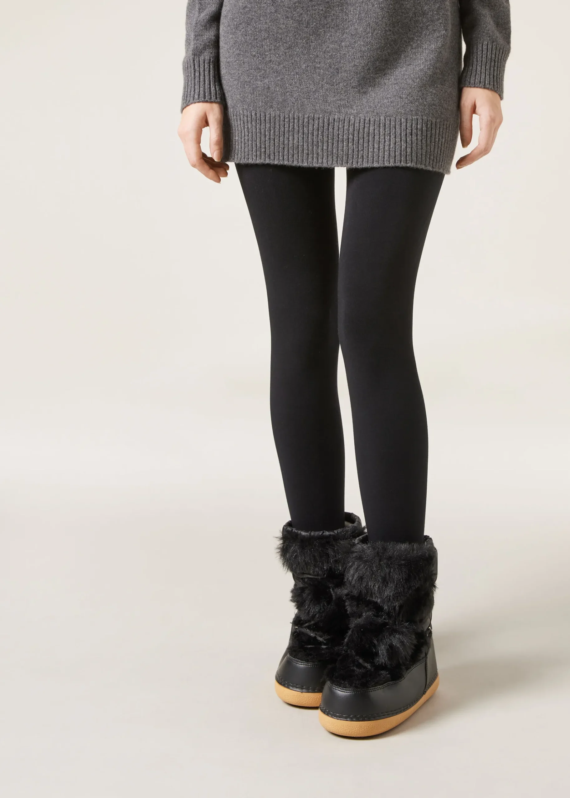 Mocno kryjące damskie rajstopy ultratermiczne wykonane z miękkiej i gładkiej tkaniny wykończonej od wewnątrz ciepłym meszkiem. Płaskie szwy i klin z mikrofibry.