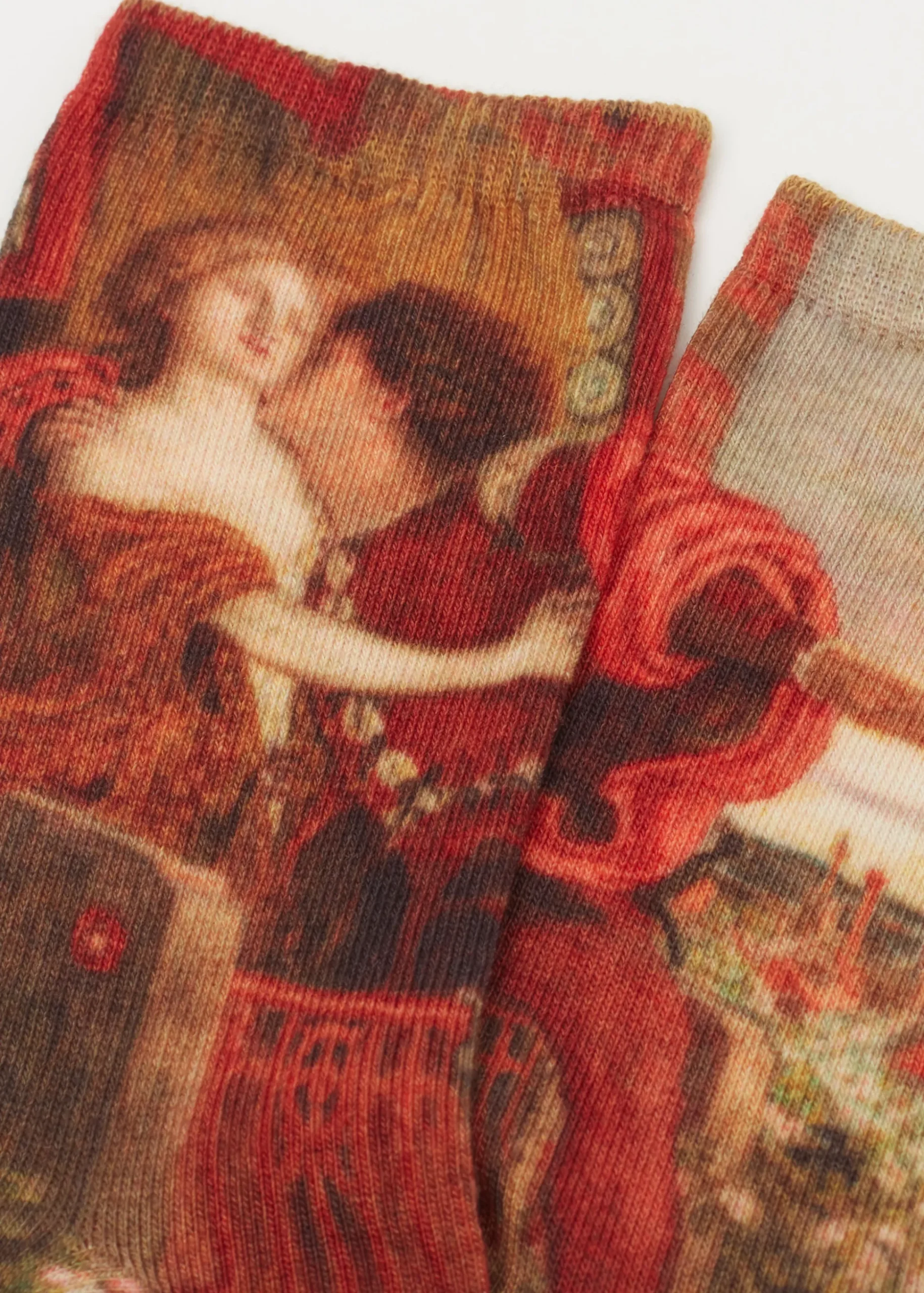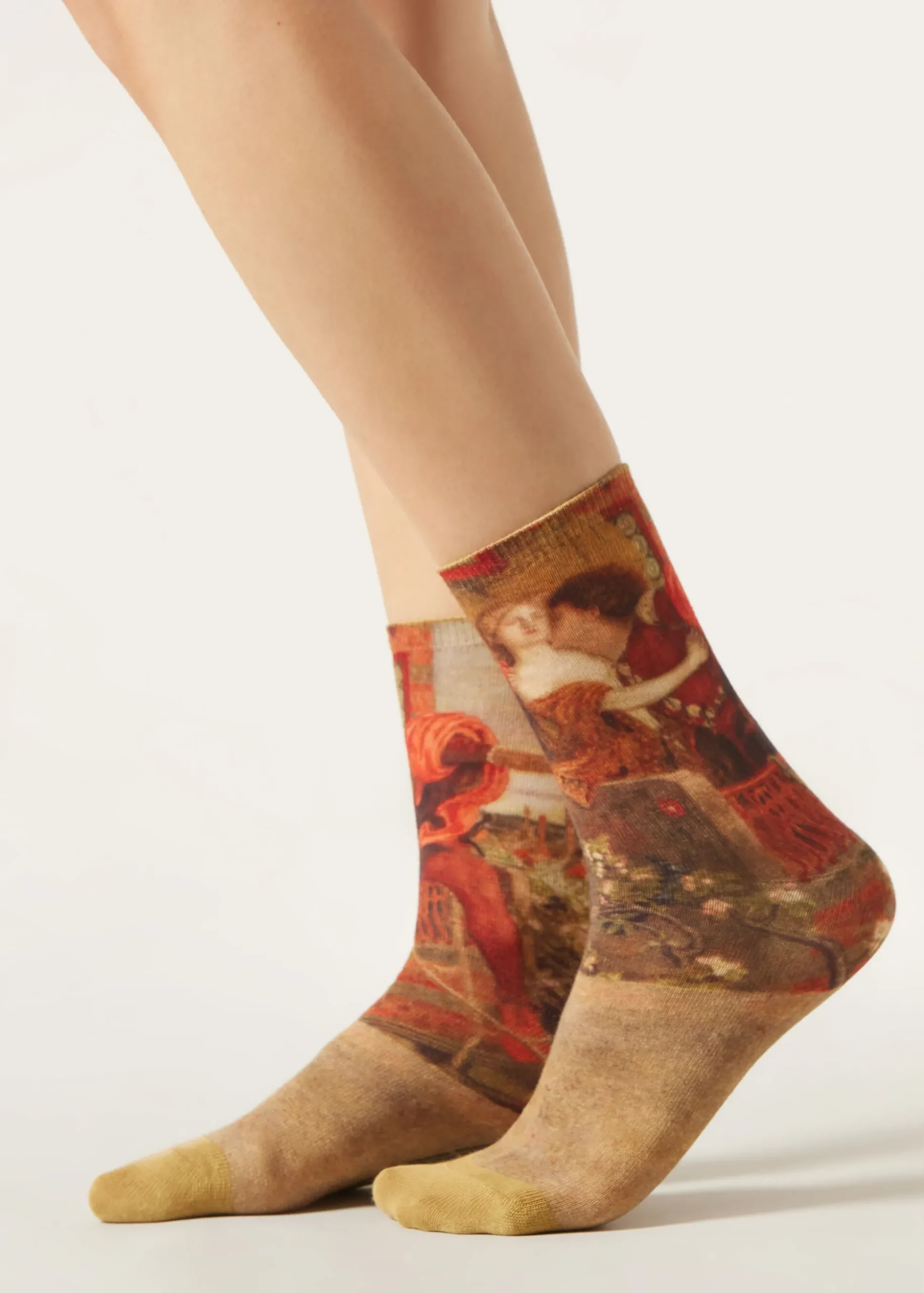 Krótkie skarpety damskie wyróżniające się kolorowym nadrukiem cyfrowym przedstawiającym obraz znanego malarza. Stanowią część specjalnej kolekcji kapsułowej Art Museum.