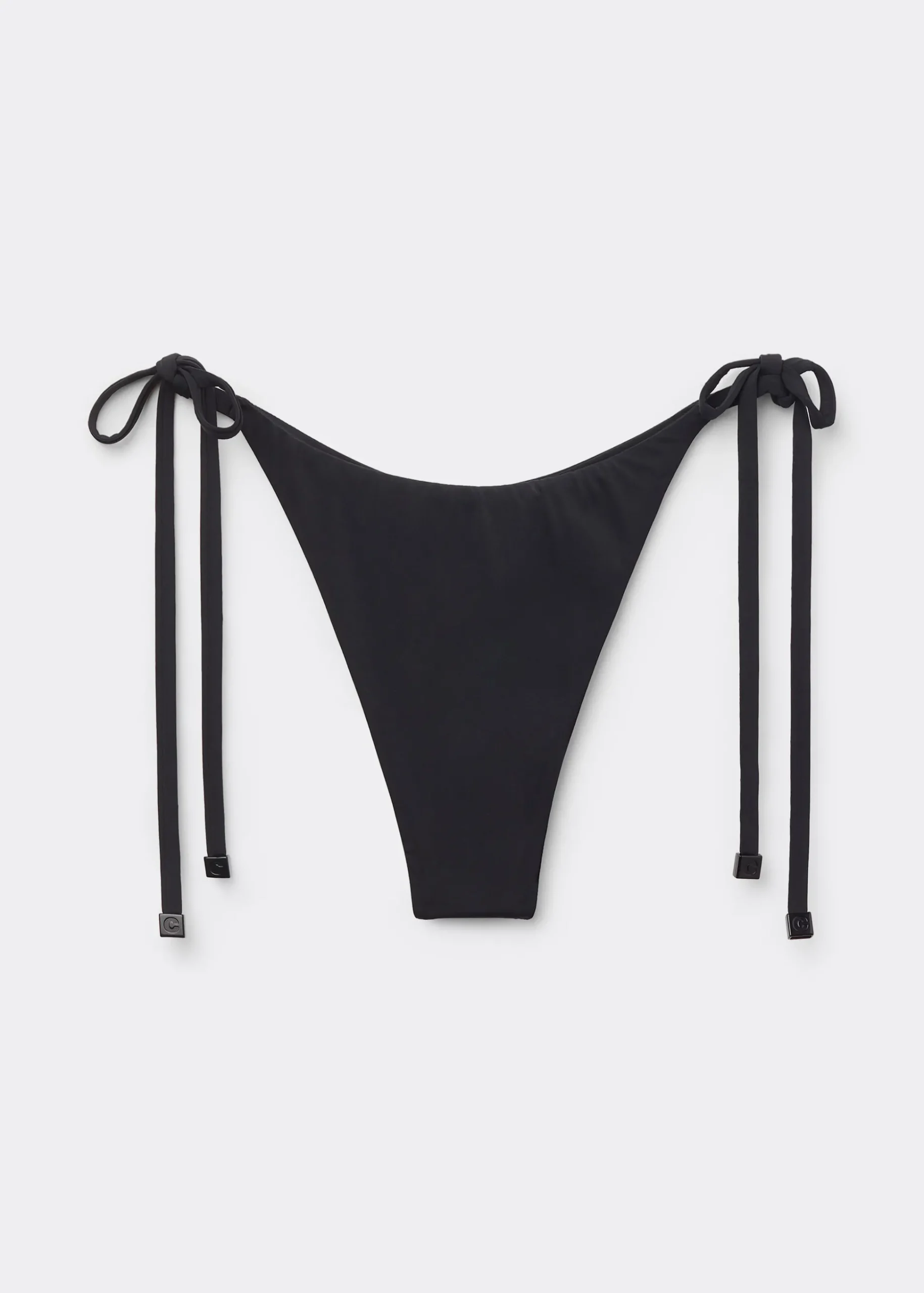 Stringi od bikini z cienkimi paseczkami w biodrach. Delikatnie zaokrąglona talia z przodu, oprócz standardowego sposobu noszenia, pozwala na efektowne odsłonięcie bioder i podkreślenie sylwetki. Niezwykle miękki materiał zapewnia przyjemność noszenia, dając uczucie lekkości i komfortu na skórze. W całości wykończone podszewką i niewidocznymi szwami.