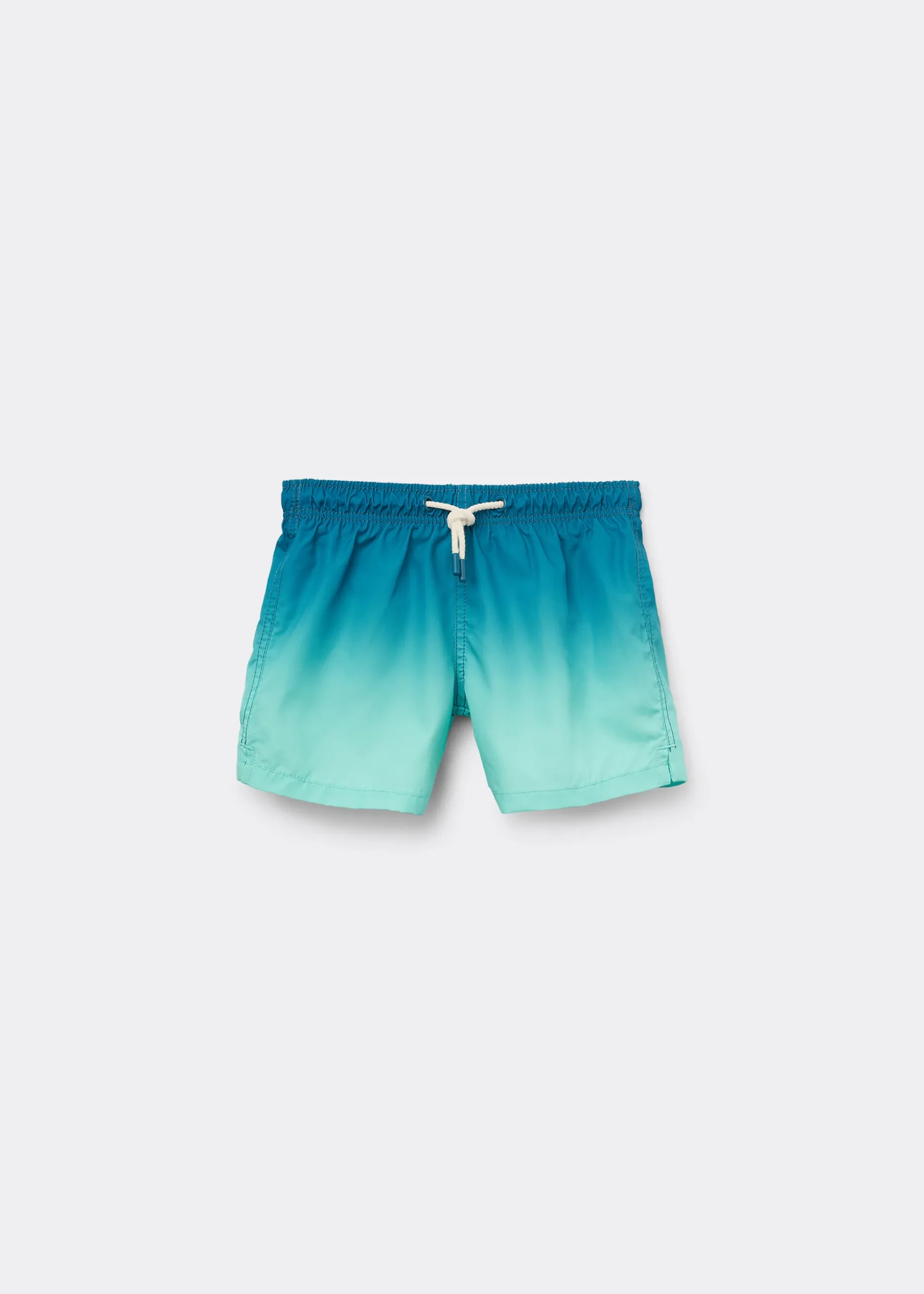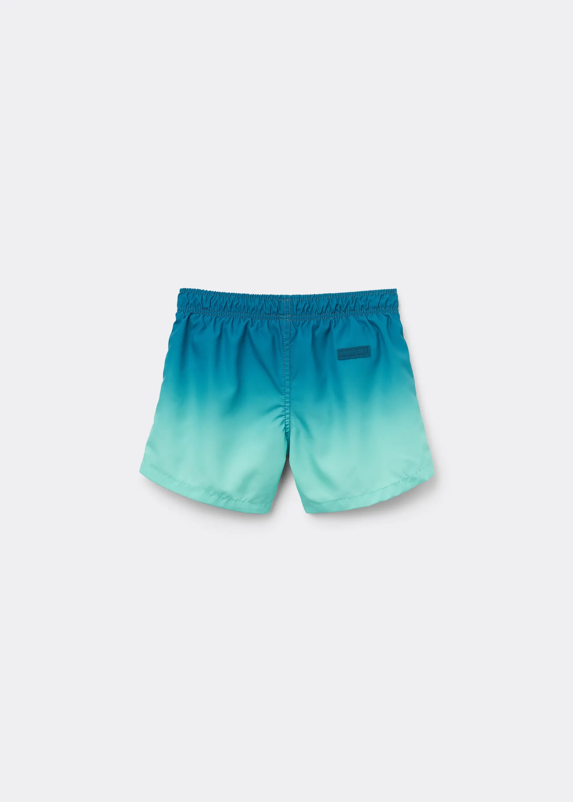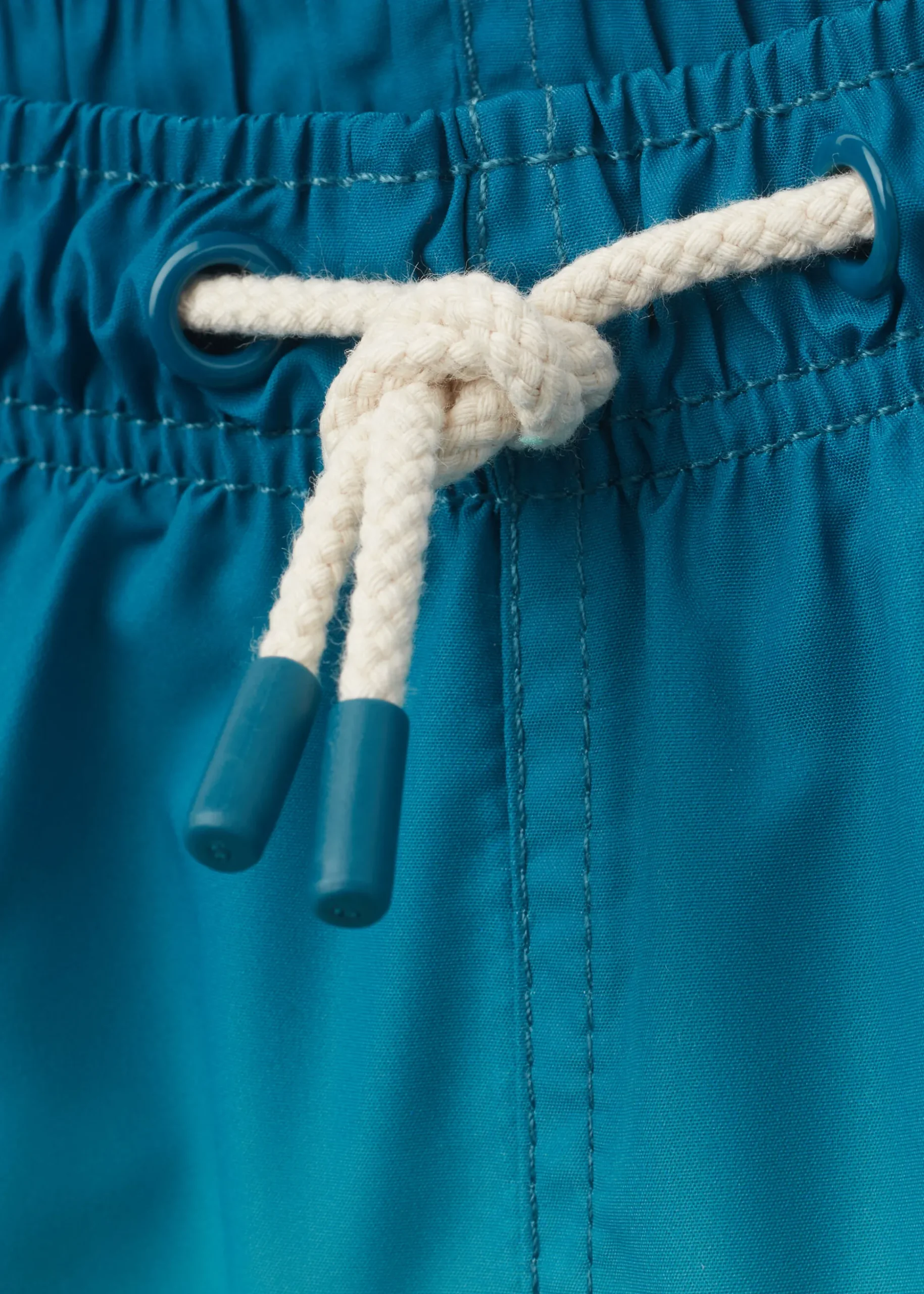 Chłopięce szorty kąpielowe z gumką w pasie, wyróżniające się kolorowym wzorem. Troczki ze sznurka z kolorowymi końcówkami. Długość do połowy uda, logo 3D z tyłu. Miękka i wygodna szybkoschnąca tkanina. Artykuł z kapsułowej kolekcji obejmującej dopasowane stylizacje dla taty i syna (gama Formentera).