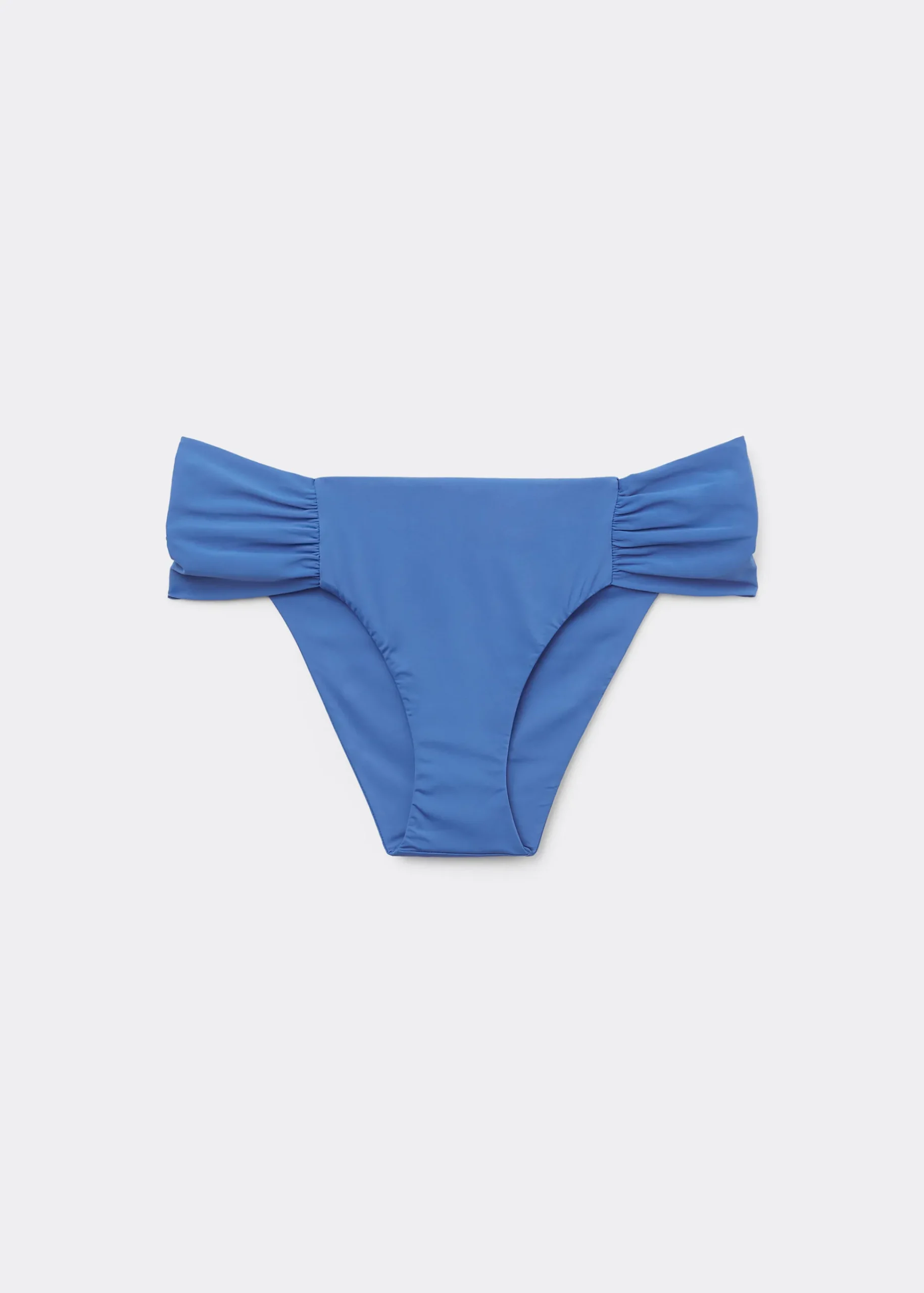 Figi od kostiumu z marszczeniem na biodrach, które umożliwia dopasowanie na odpowiedniej wysokości. Niezwykle miękki materiał zapewnia przyjemność noszenia, dając uczucie lekkości i komfortu na skórze. W całości podszyte podszewką i wykończone niewidocznymi szwami.