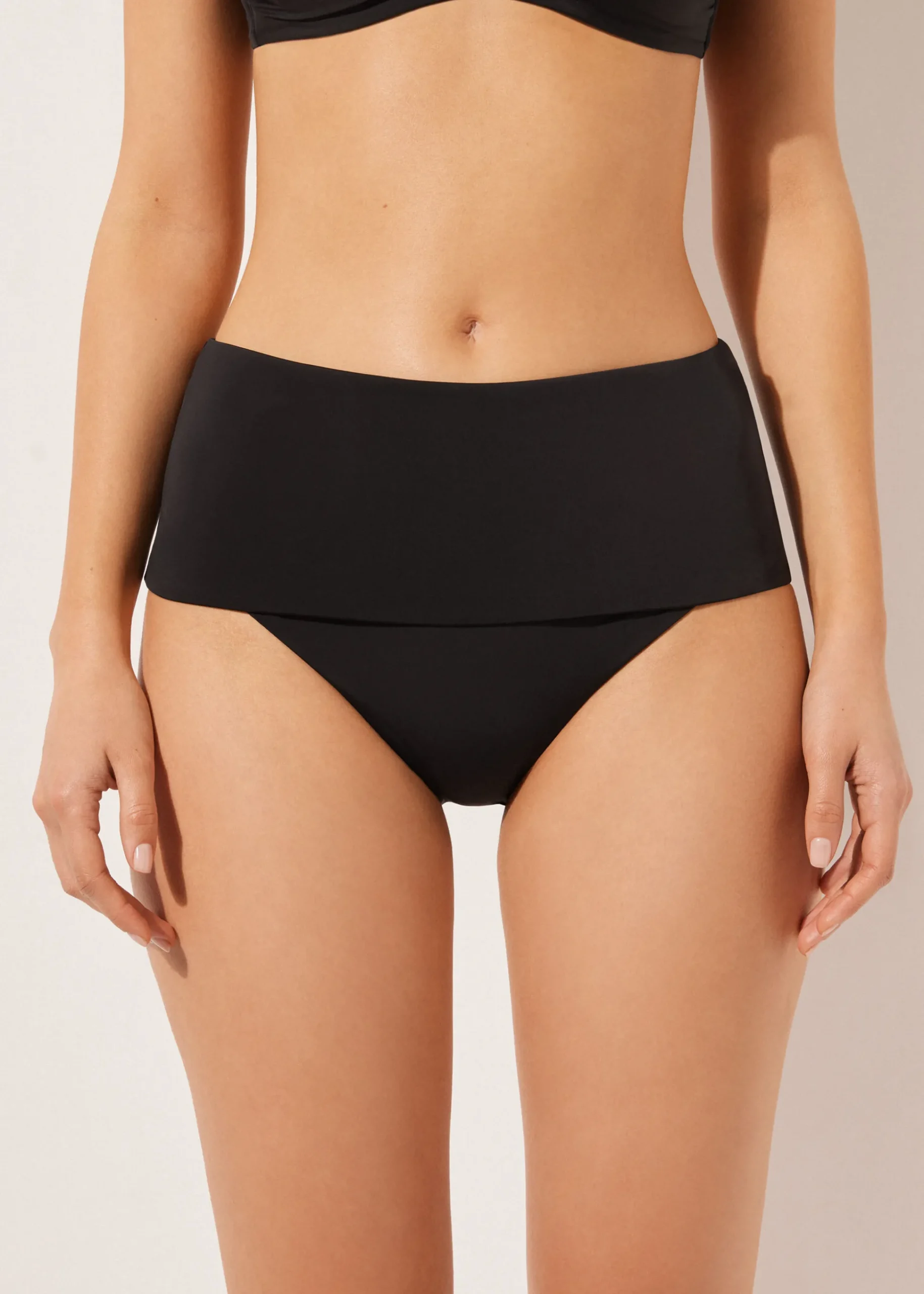 Figi od kostiumu z szerokim pasem, który można podnieść, całkowicie zakrywając brzuch i boki, lub odwinąć do dołu, zakrywając biodra i pośladki. Zakrywający brzuch krój z wysokim stanem czyni je idealnymi figami od kostiumu dla kobiet w ciąży. Niezwykle miękki materiał zapewnia przyjemność noszenia, dając uczucie lekkości i komfortu na skórze. W całości podszyte podszewką i wykończone niewidocznymi szwami.