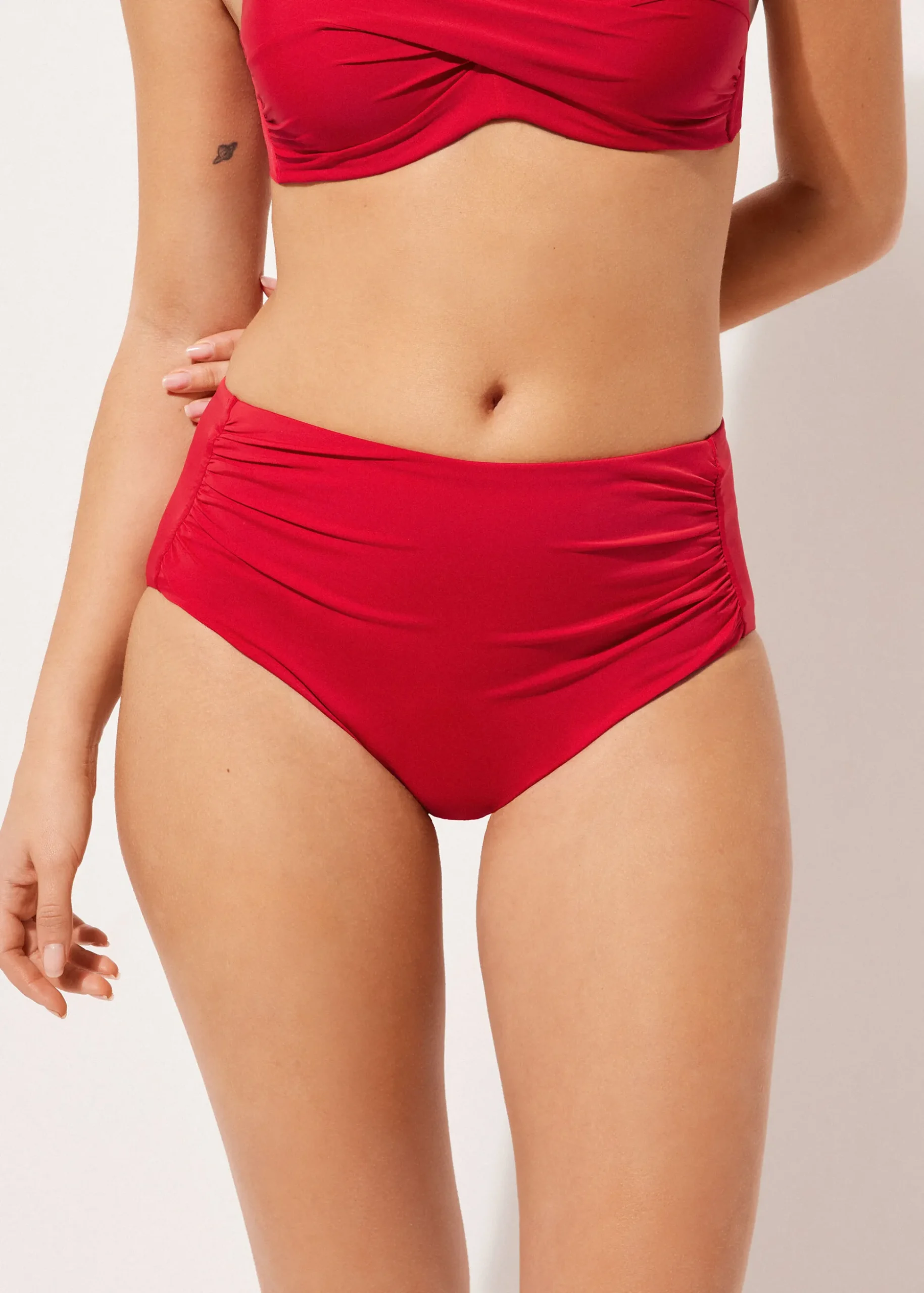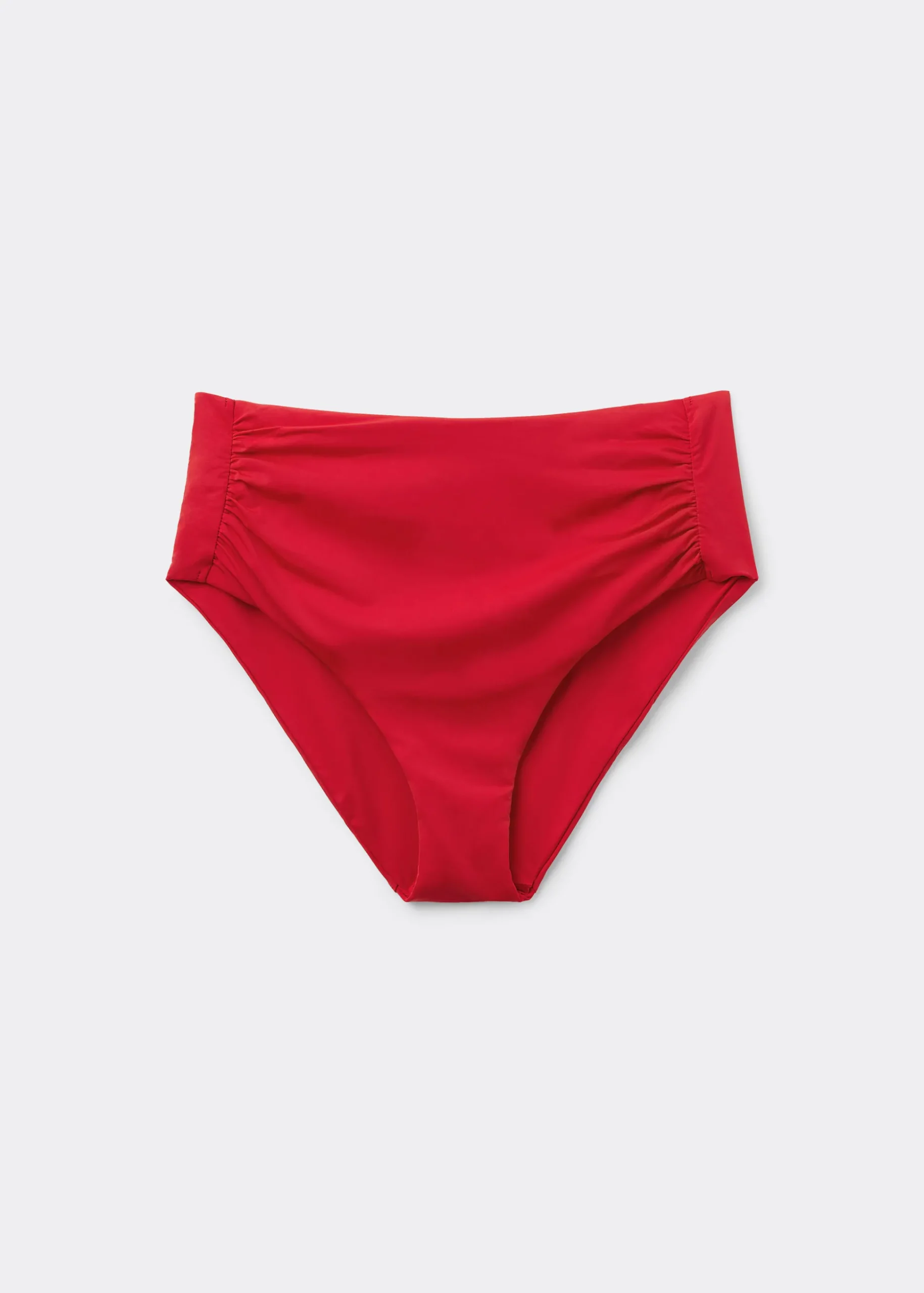 Figi od bikini z podwyższonym stanem i marszczeniem z boku, wzmocnione z przodu specjalnym tiulem lekko modelującym brzuch. Niezwykle miękki materiał zapewnia przyjemność noszenia, dając uczucie lekkości i komfortu na skórze. W całości podszyte podszewką i wykończone niewidocznymi szwami.
