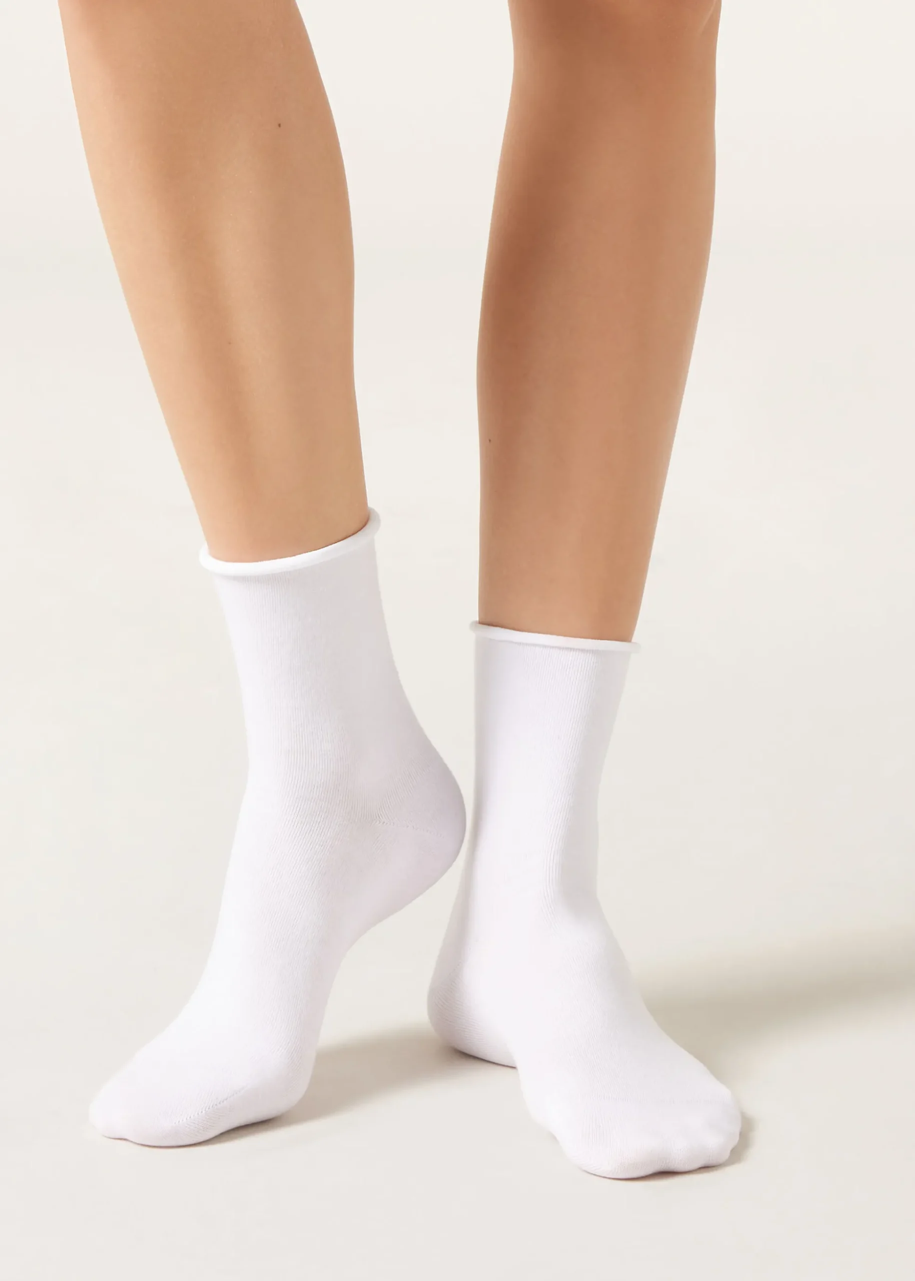 Krótkie skarpetki damskie z bawełny bez ściągacza.