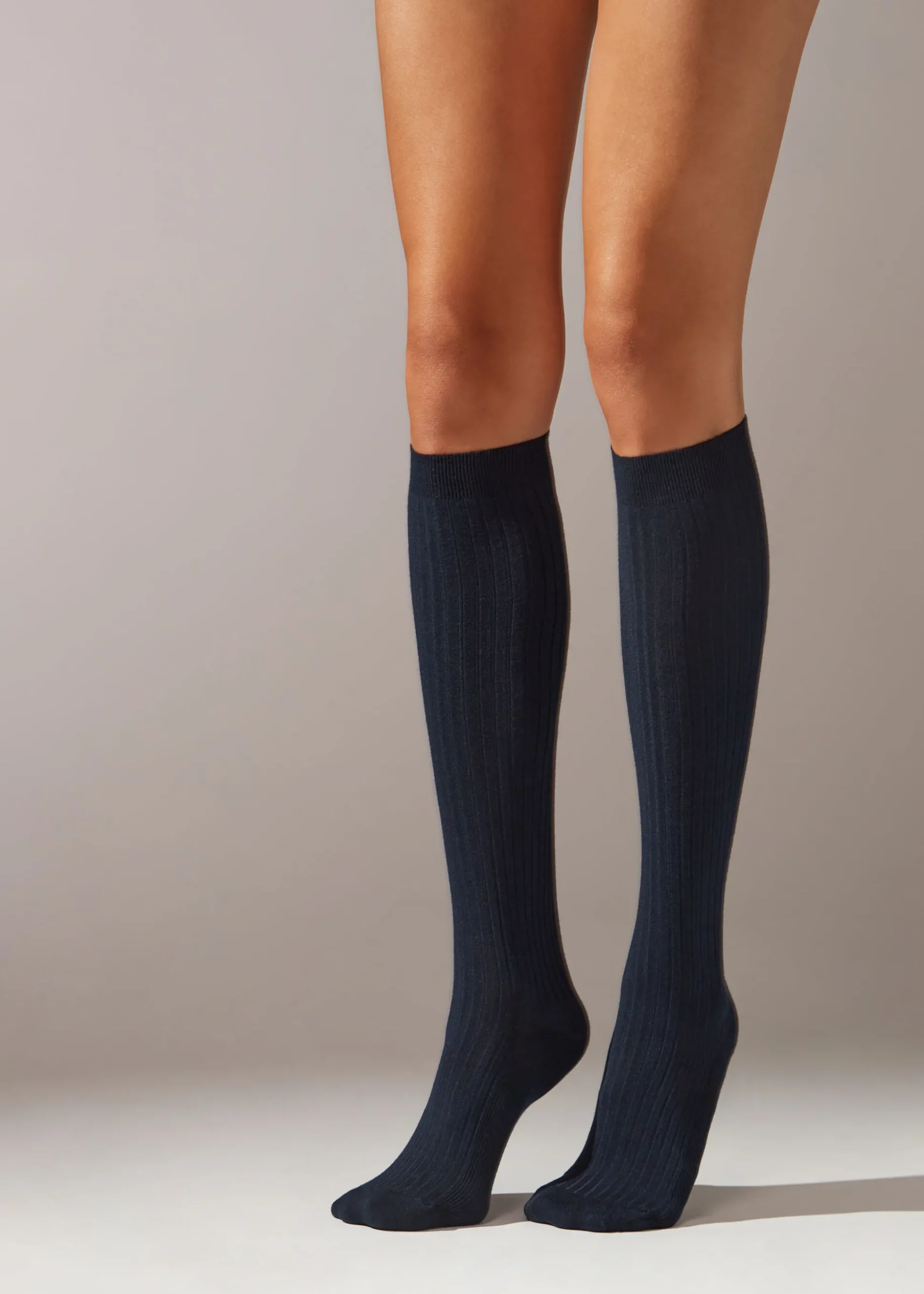 Podkolanówki damskie o prążkowanej fakturze, z domieszką miękkiego kaszmiru. Niezwykle ciepłe i wygodne.