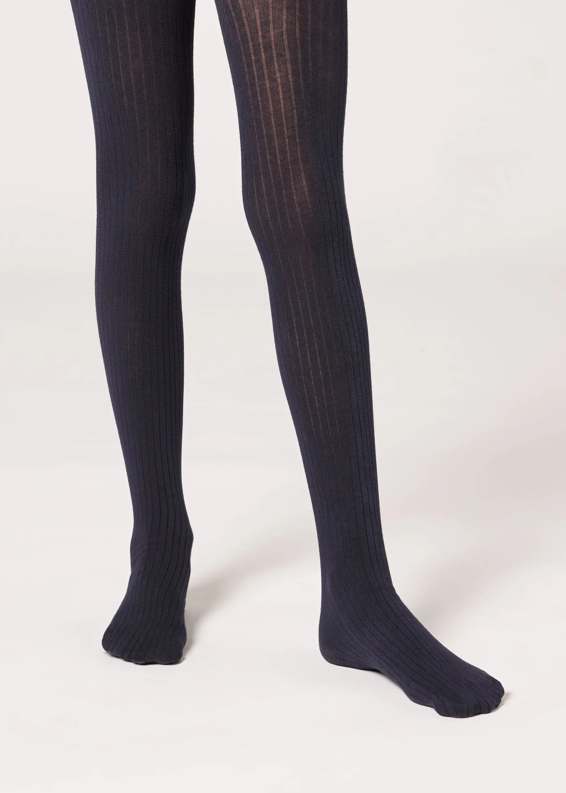 Dziewczęce rajstopy z miękkiej bawełny o prążkowanej fakturze.