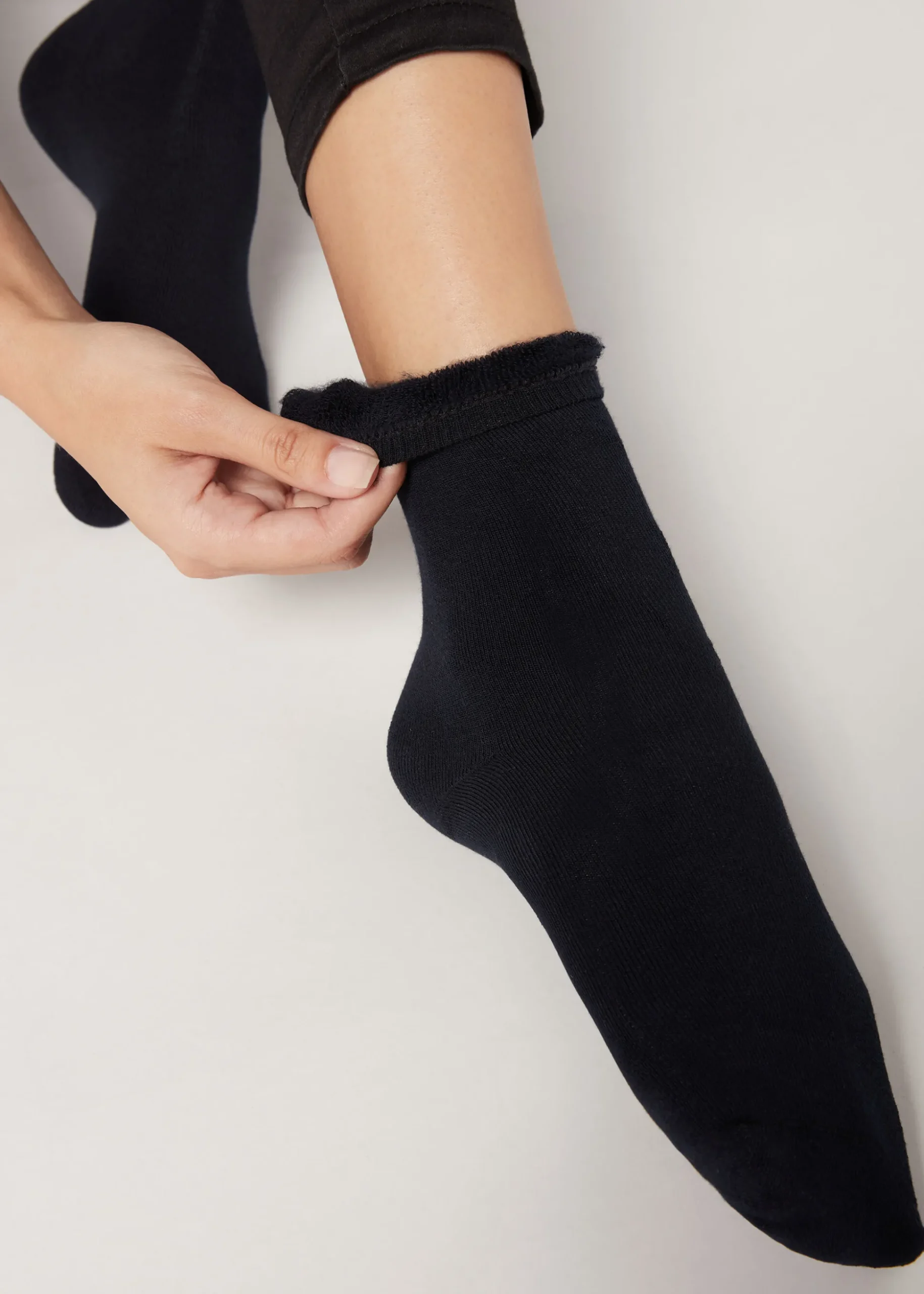 Krótkie skarpetki damskie z bawełny szczotkowanej, ocieplane.