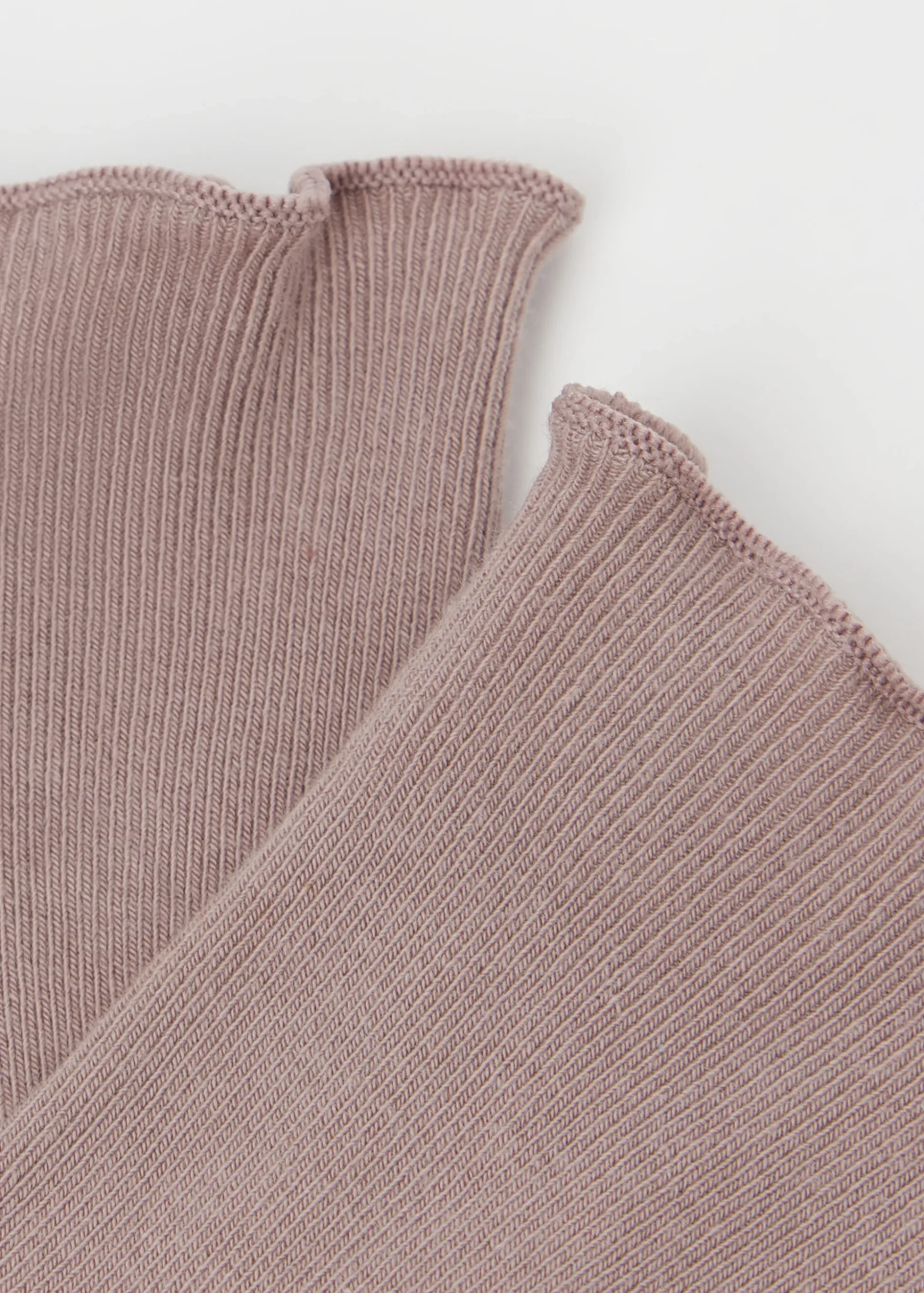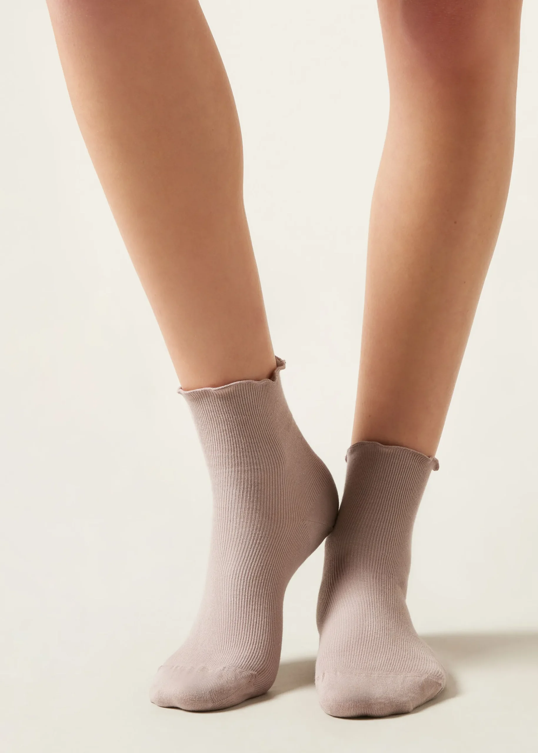 Krótkie skarpety damskie z prążkowanej bawełny wykończone romantycznym brzegiem.