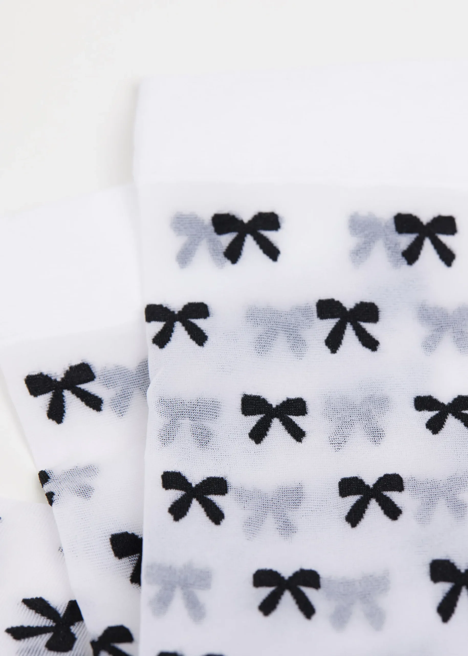 Cienkie krótkie skarpety damskie 15 den z kokardkami na całej powierzchni, wykończone gładkim ściągaczem.